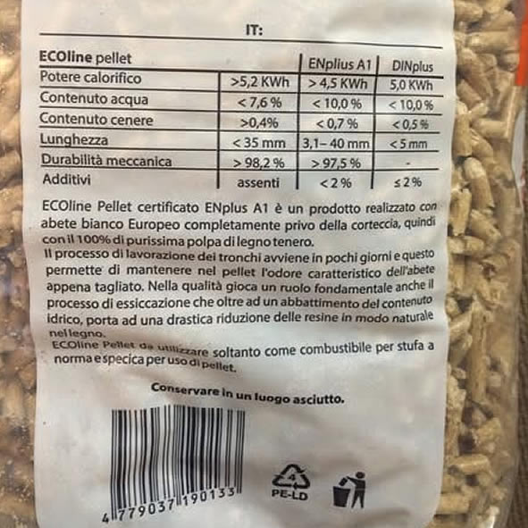 - la dicitura “pellet di legno”;